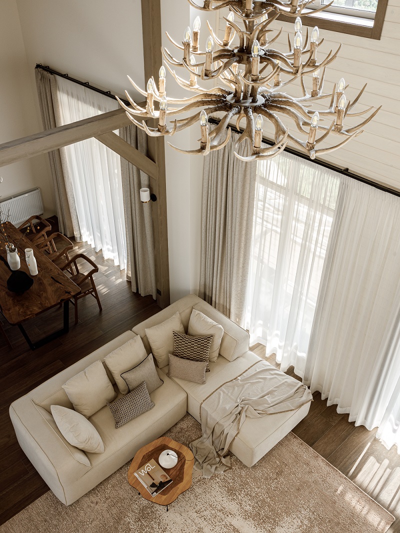 В итоге получился современный интерьер в стиле «скандинавский шале». Цветовая гамма преимущественно пастельная: бежевые, кремовые и светло-коричневые оттенки создают спокойную уютную атмосферу.